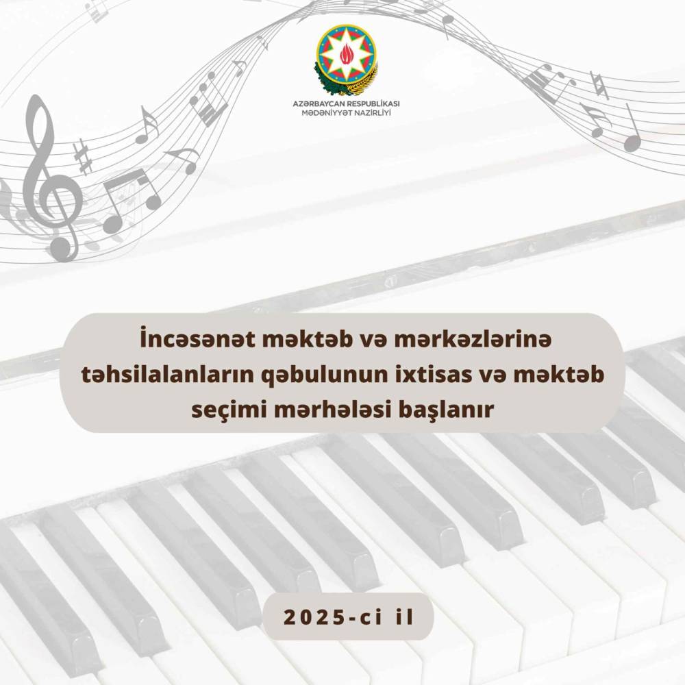 14 avqust tarixindən Mədəniyyət Nazirliyi sistemində fəaliyyət göstərən musiqi, incəsənət məktəb və mərkəzlərinə şagird qəbulunun ixtisas və...